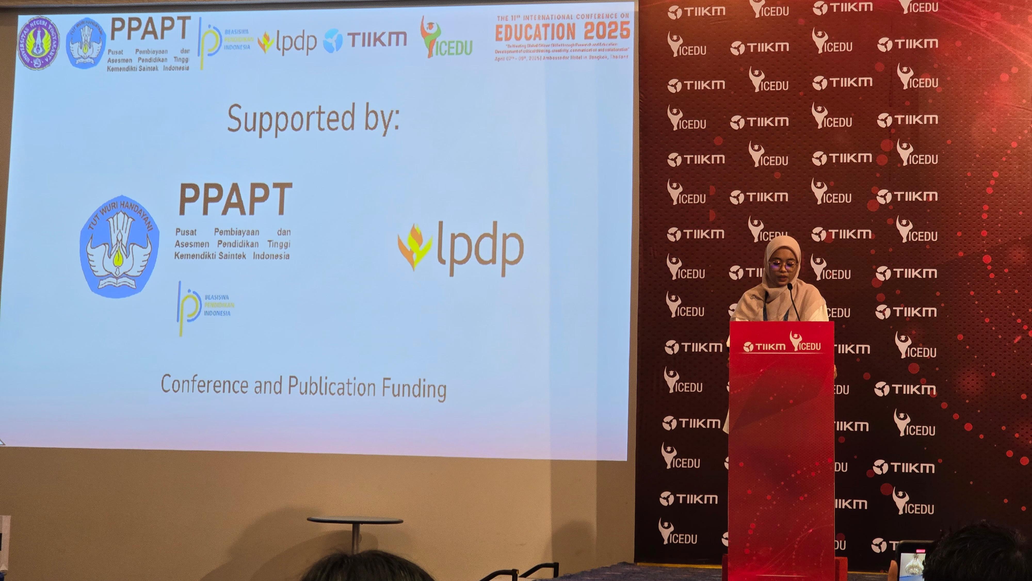 The 11th International Conference on Education 2025 (ICEDU) was held in Bangkok on April 7-9, 2025. This conference is undoubtedly included in the scope of Education with the theme "Cultivating Global Citizen Skills through Research and Education: Development of Critical Thinking, Creativity, Communication, and Collaboration". ICEDU 2025 was attended by more than 5 countries, namely, Australia, Brazil, Egypt, Germany, India, Indonesia, Italy, Kenya, Malaysia, Nepal, New Zealand, Nigeria, Norway, Pakistan, Philipines, Singapore, South Africa, Tanzania, UAE, UK, US.